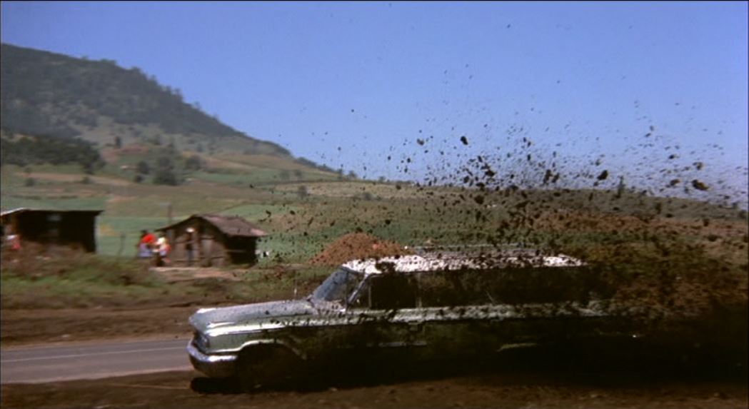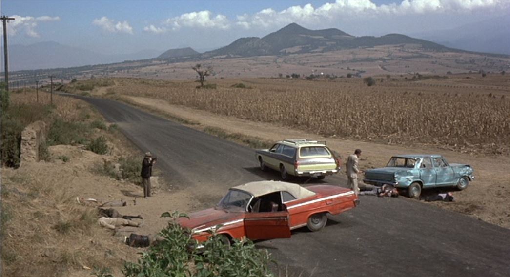 One thing that stands out to me in the film is that the cars are treated as poorly as the people are. In a movie about a rich bastard seeking bloody revenge I expect lives to be disposable. But given the film’s setting – the baking hot and sparsely populated Mexican wilderness – one would expect the individuals crisscrossing this landscape pursuing or retreating from each other to take slightly better care of their thirsty chariots. One flat tire, one bad hole in the radiator, one blown hose, one knock to the oil pan, or one of a dozen other reasonably likely breaks and you’re suddenly stranded in the middle of a very hot and dangerous nowhere. Yet the characters (thankfully for us viewers) don’t seem to care. These mechanical beasts are pushed to their limits, and while a good part of that is because it looks cool and makes the movie more visually exciting, I think part of it to serve as an metaphor for the characters, especially Bennie (Warren Oates)