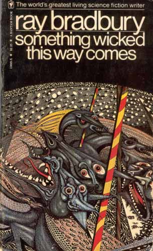 That final passage ties a loop around the theme of the book. Two boys, Jim and Will, are on the cusp of adolescence, the boundary to adulthood. They are still children, but taking childhood’s final full breaths. Will’s father, Charles Halloway, was forty when Will was born, and is nearing old age now, with heart problems. The book examines mortality and death and the desire to live forever through the two lenses of Will’s youth and his father’s advancing age. A dark carnival comes to town on a screaming train late one night and sets up in a field outside town. Something is wrong with this carnival, and Jim and Will can’t quite put words to what it is. They are drawn to the horror and danger and magic of the carnival’s leader, Mr. Dark, a tattooed yet stately man of unknown age and preternatural knowledge of the fears and curiosities tumbling through the boys’ minds. They are drawn to him as they are drawn by the fascination of death to books of adventure, danger, torture, and crime in the library Will’s father works at late into the night.