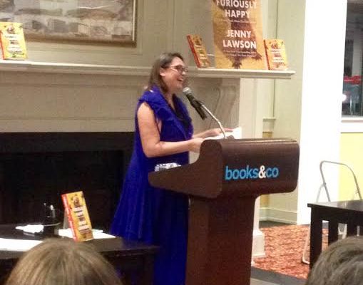 Lawson’s gift is in laying her mental health issues bare, bravely sharing about her depression, anxiety, and other mental health problems while never being less than blisteringly funny. When she reached the podium in front of the enthusiastic crowd she confessed the severe anxiety that sometimes provokes panic attacks during public readings, and told us she would do her best. My guess is that many or most of those present (my wife and I included) have anxiety issues or associated problems as well, so this was met with understanding. She began by expressing excitement and surprise that Furiously Happy was now in its fourth week on the New York Times best sellers list with the following quip: “I mean, I see Mindy Kaling’s book, and everybody likes Mindy Kaling, so that makes sense. And there’s that O’Reilly guy (crowd groans), and then there’s my book with a dead raccoon on the front. What?”
