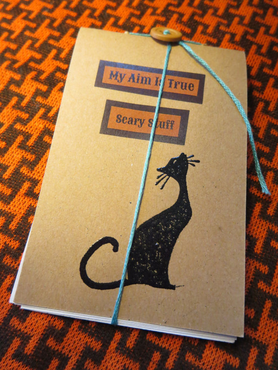 Issue #9 of My Aim Is True, a 1/8-sized zine that is lovingly and craftily printed and bound by Carrie Colpitts, states on its first page it’s going to be about scary things, since it was published just before Halloween. Rather than ghosts and goblins, though, the zine instead explores a series of very real personal fears the author struggles with.